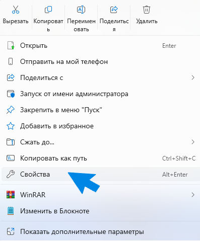 В открывшимся окне выбираем пункт "СВОЙСТВА"
