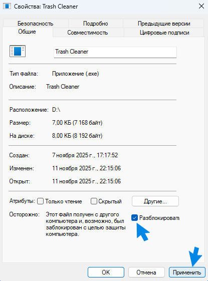 Далее в нижней части окна "ОБЩИЕ" выбираем пункт "РАЗБЛОКИРОВАТЬ"